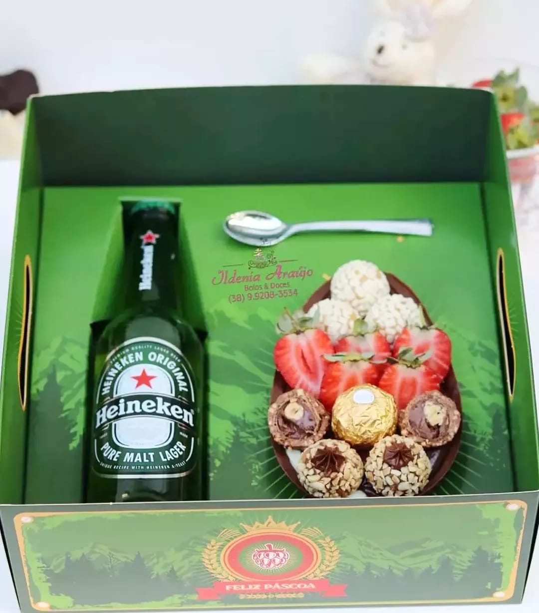 Kit com Ovo Ferrero Rocher, com cerveja long nek.